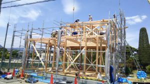 お陰様で事故や怪我もなく、予定通り一日で屋根まで仕上がり、無事に終える事ができました。